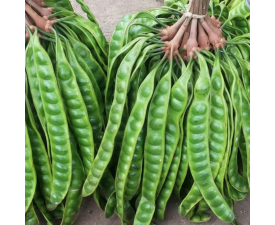 - Mempunyai salut berbentuk papan yang panjang, dengan isi kacangnya yang berwarna hijau terang.