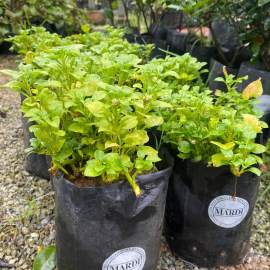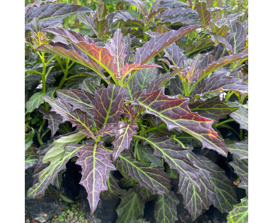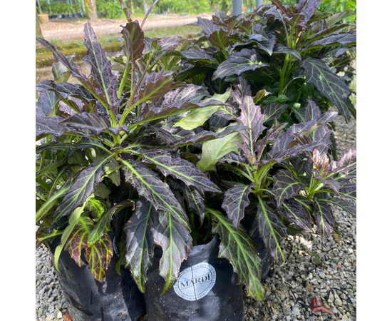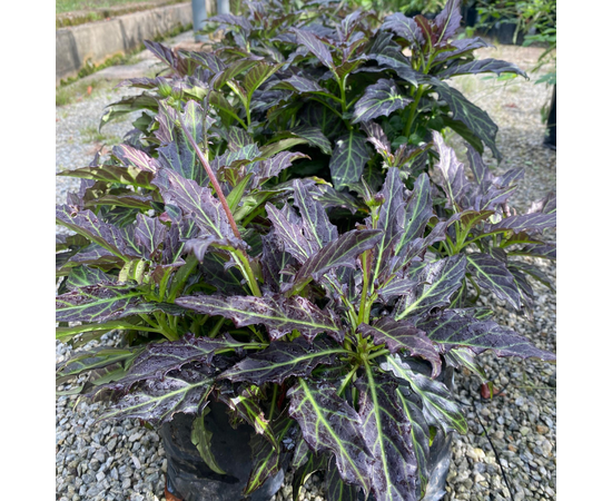- Memiliki warna ungu daun bercampur warna hijau urat daun.