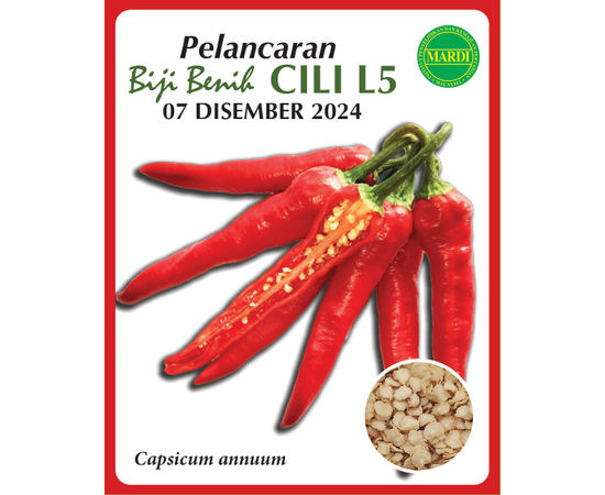 • Varieti cili baharu L5 dibangunkan melalui kaedah Pemilihan Biji Tunggal (SSD) hasil kacukan antara dua induk terpilih iaitu Ch 234-14 dan Ch 231.