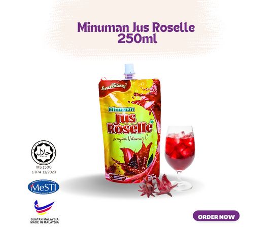Minuman Jus Roselle diperbuat daripada roselle segar yang diadun bersama pemanis stevia. Ia sesuai untuk semua peringkat usia. Nikmati khasiat roselle untuk keluarga tersayang.
